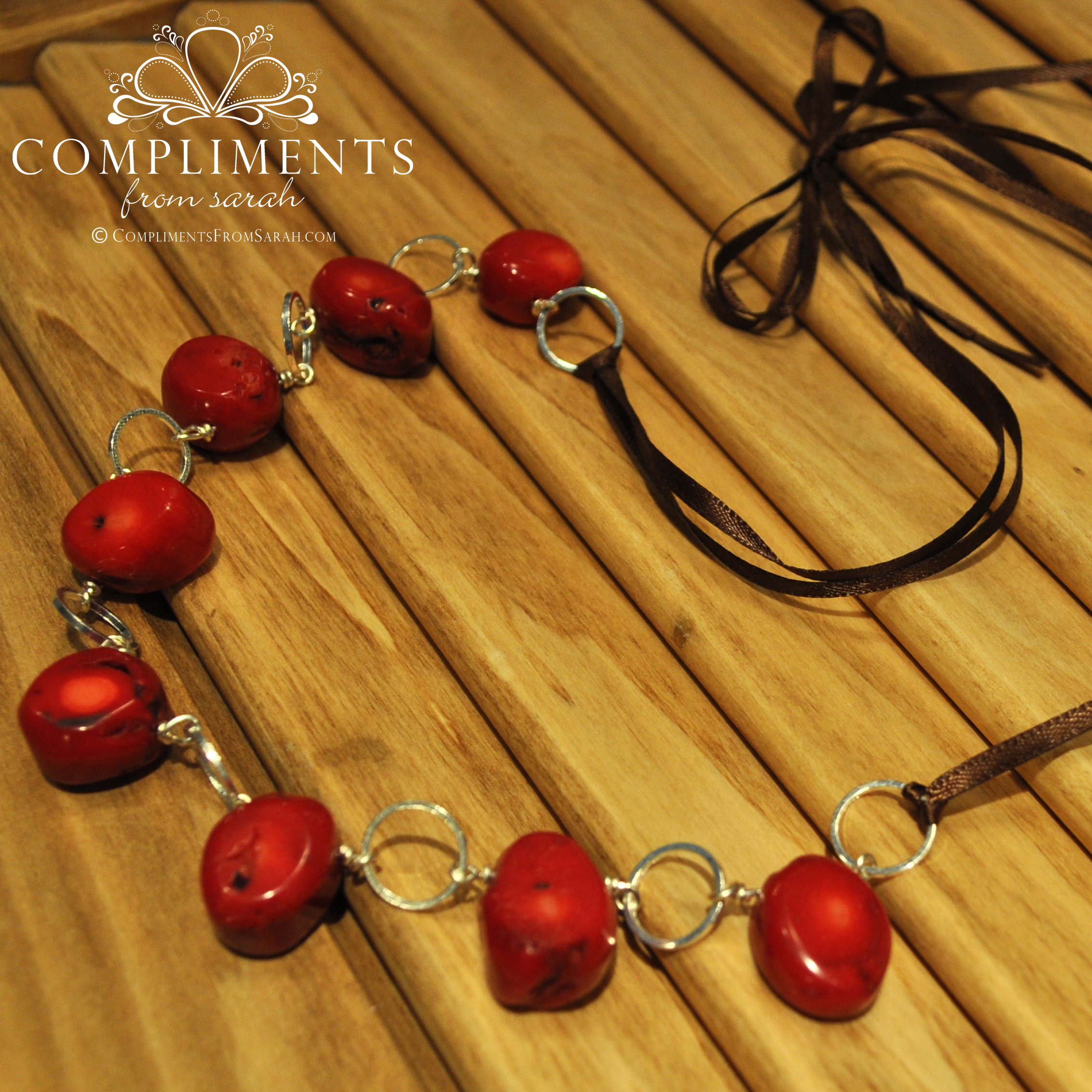 chocolate cherry ribbon necklace Published March 3, 2012 at 2265 × 2265 in jewelry natural red stones intertwined with silver circles strung from chocolate brown ribbon Share this: Click to share on Facebook (Opens in new window) Facebook Click to share on X (Opens in new window) X Click to share on Pinterest (Opens in new window) Pinterest Click to email a link to a friend (Opens in new window) Email More Click to share on Tumblr (Opens in new window) Tumblr Click to share on Reddit (Opens in new window) Reddit Click to share on LinkedIn (Opens in new window) LinkedIn Click to print (Opens in new window) Print Like Loading...