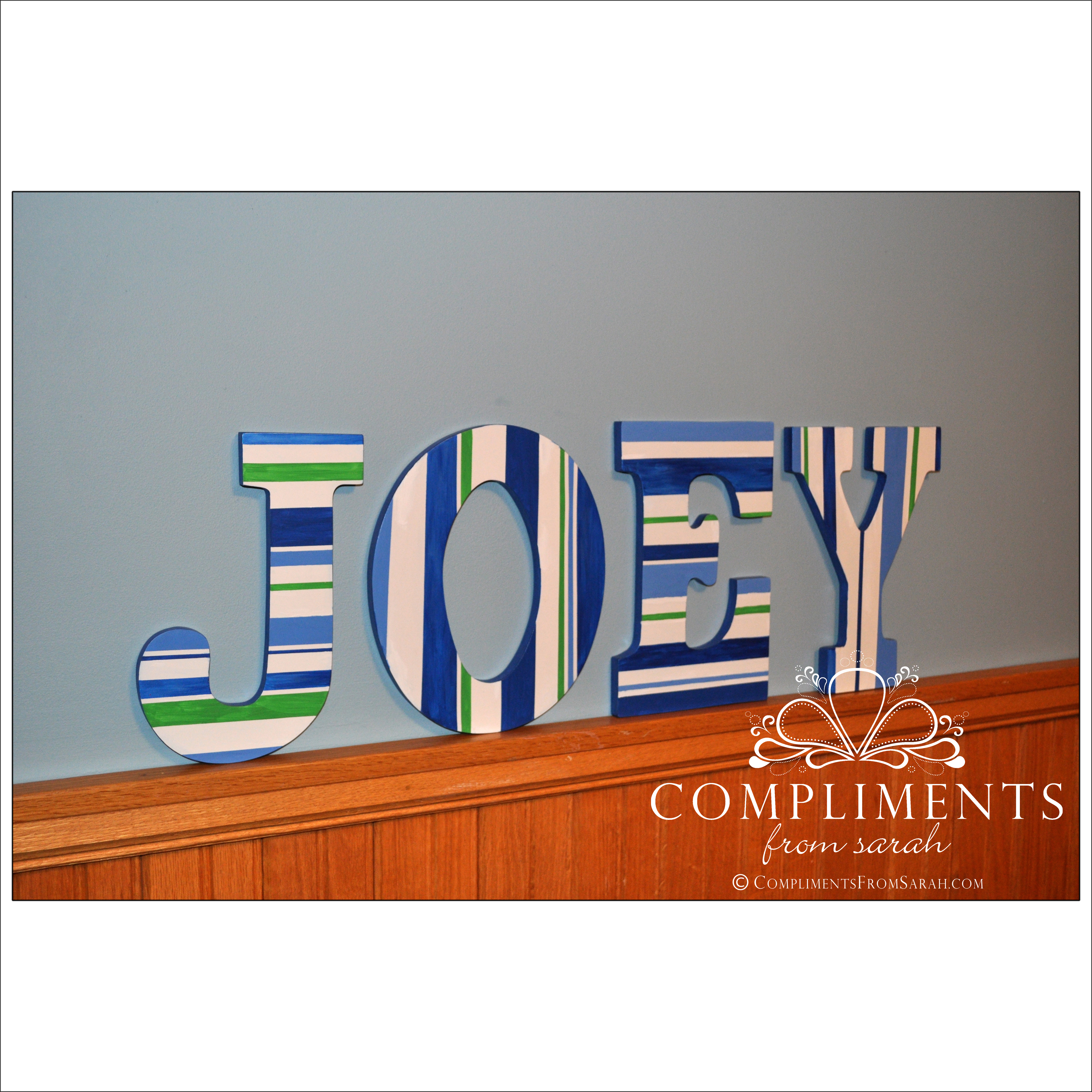 joey Published March 3, 2012 at 4388 × 4388 in letters hand painted blue & green stripes for joey’s room. Share this: Click to share on Facebook (Opens in new window) Facebook Click to share on X (Opens in new window) X Click to share on Pinterest (Opens in new window) Pinterest Click to email a link to a friend (Opens in new window) Email More Click to share on Tumblr (Opens in new window) Tumblr Click to share on Reddit (Opens in new window) Reddit Click to share on LinkedIn (Opens in new window) LinkedIn Click to print (Opens in new window) Print Like Loading...