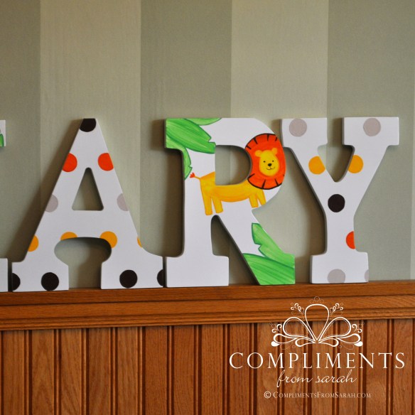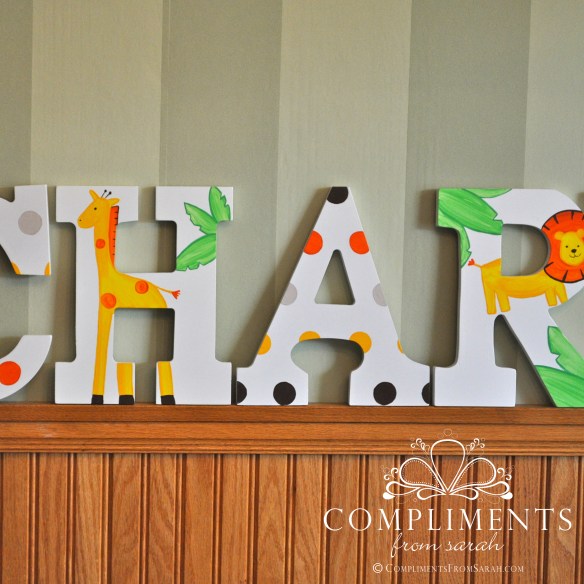 Baby twin boys Germain & Zachary arrived this winter to happy parents Jennifer & Alan. Check out the hand painted letters that I just finished for their safari themed nursery!